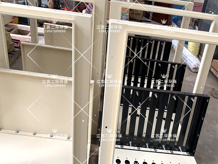 7、扁布袋除塵器籠架通常為1.5米,厚實耐壓,使用壽命長;旁插式安裝,不占用頂部空間。