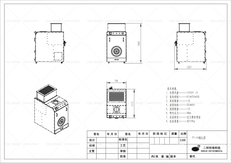 3、PT-1H型移動焊煙單機圖紙(下圖)注意:濾筒+活性炭=2級過濾喔!